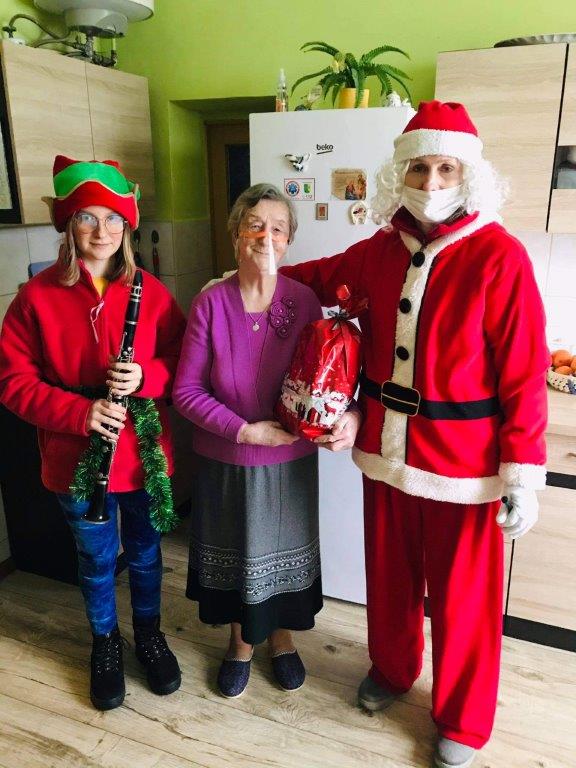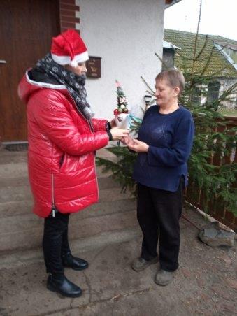 W ostatnich dniach grudnia br. opiekunowie Dziennego Domu w Gostycynie i Klubu Seniora + w Wielkim Mędromierzu odwiedzili swoich podopiecznych. Dzięki programowi Senior+ realizowanego przez  Gminę Gostycyn przy udziale Gminnego Ośrodka Pomocy Społecznej w Gostycynie, otrzymali oni drobne upominki oraz świąteczne życzenia. Seniorzy byli mile zaskoczeni, a zarazem ucieszyli się na nasz widok. Członkowie domu i klubu liczą na szybki powrót do normalnych zajęć i przesyłają wszystkim serdeczne życzenia i pozdrowienia!!! Przypomnijmy, iż funkcjonowanie ośrodków wsparcia możliwe jest dzięki Programowi Senior+ na lata 2015-2020 Edycja 2020 przy wsparciu z Ministerstwa Rodziny i Polityki Społecznej oraz Wojewody Kujawsko-Pomorskiego na mocy porozumień zawartych w dniu 28 maja 2020r. Opiekunowie odwiedzili także rodzinę repatriantów zamieszkującą już od wielu lat naszą gminę. Corocznie Wójt Gminy Gostycyn przekazuje życzenia i drobny upominek od władz gminy.