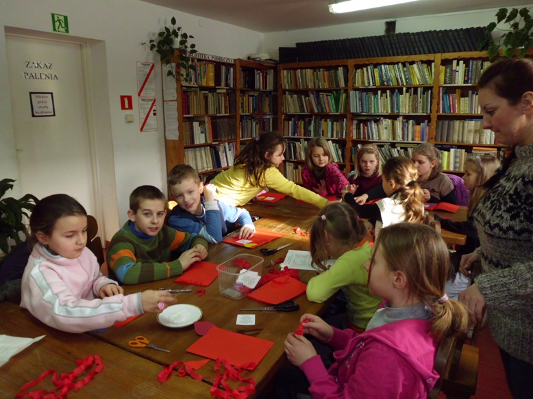 W dniu 7.02.2012 r. (wtorek) o godz. 12.15 w czytelni Gminnej Biblioteki Publicznej w Gostycynie odbyły się zajęcia plastyczne. Dzieci z klas I-III wykonywały piękne kartki okolicznościowe z okazji Walentynek, pod okiem pani Magdaleny Górka. Następne spotkanie zaplanowano na 6.03.2012r. (wtorek) również na 12.15 w czytelni. Tym razem z okazji Światowego Dnia Psa, dzieci wykonają prace z masy solnej. Zapraszamy.