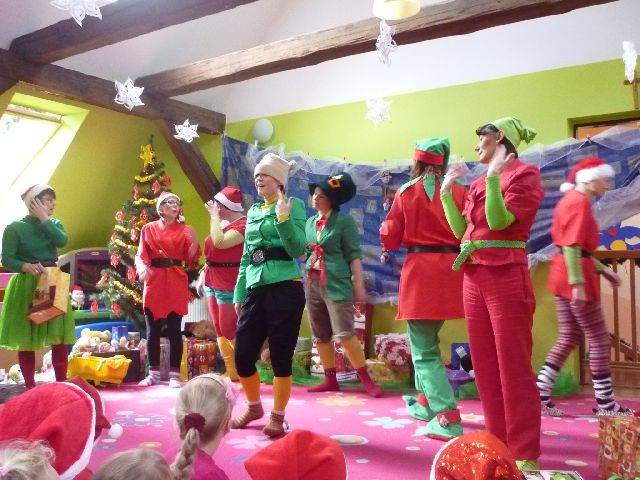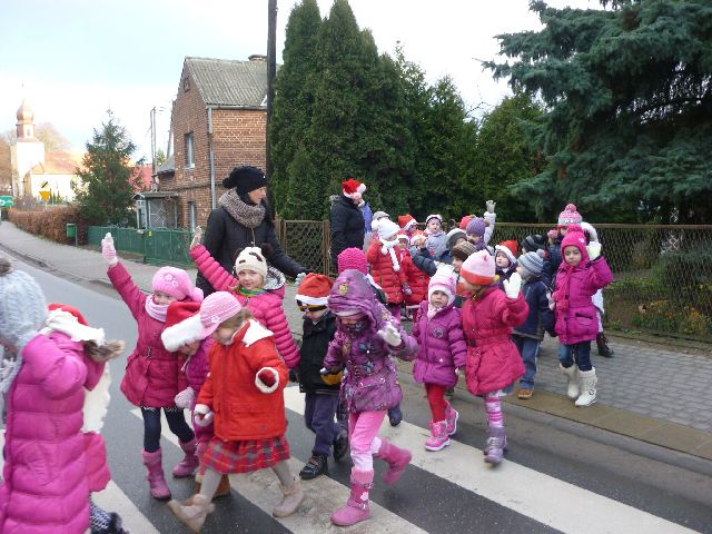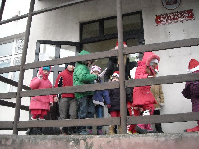 Grudzień to miesiąc przygotowań do Mikołajek i Świąt Bożego Narodzenia .W związku z tym 5 grudnia razem z dziećmi wybraliśmy się do poczty  aby  wysłać kartki świąteczne. Zakupiliśmy znaczki  i wrzuciliśmy listy do skrzynki .Gdy już chcieliśmy wracać Pani z poczty przybiegła do nas i powiedziała ,że ma dla nas list od św. Mikołaja .Okazało się ,że św. Mikołaj czeka na nas w przedszkolu z niespodzianką  ,którą przygotował razem z elfami. Św. Mikołaj  poprosił  również o to abyśmy po drodze zebrali jego rzeczy bo tak się spieszył do przedszkola  ,że je pogubił. Dzieci bardzo się ucieszyły z listu i podekscytowane  szukały rzeczy pozostawionych po drodze. W przedszkolu czekała na nas niespodzianka w wykonaniu Rodziców . Było to przedstawienie p.t.” „ Pracownia Świętego Mikołaja”