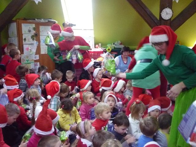 Spotkanie z Mikołajem minęło w bardzo miłej atmosferze. Mikołaj obdarował wszystkie dzieci prezentami i prosił, aby były grzeczne przez cały rok .