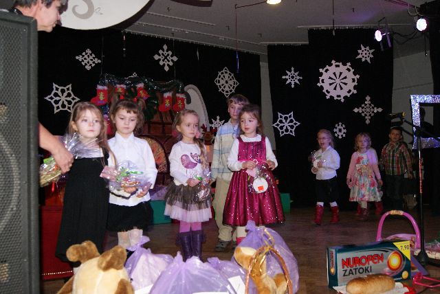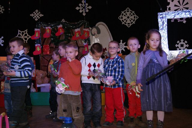 Dla każdego z nas święta Bożego Narodzenia to szczególny czas. To nie tylko wspomnienie ważnego wydarzenia religijnego, ale także czas odpoczynku, spotkań z bliskimi i rodziną. Coraz częściej święta stają się ucieczką od codzienności, czasem wyciszenia i refleksji. Pięknie ustrojona choinka, wesołe dźwięki kolęd oraz radość przystrajająca ludzkie serca oznajmiają, że nadszedł czas odpoczynku i świętowania. Z tej okazji przygotowaliśmy wspólnie z dziećmi przedstawienie p.t. ”Nie przyjeżdżaj do nas w tym roku Mikołaju ‘’,które odbyło się 19 .12.2013 w Gminnym Ośrodku Kultury w Gostycynie. Dzieci obdarowały swoich rodziców samodzielnie wykonanymi pracami. Po przedstawieniu odbyła się licytacja bombek wykonanych przez rodziców .Bardzo dziękujemy wszystkim ,którzy zaangażowali się w wykonanie bombek i brali udział w licytacji. Dziękujemy:)
