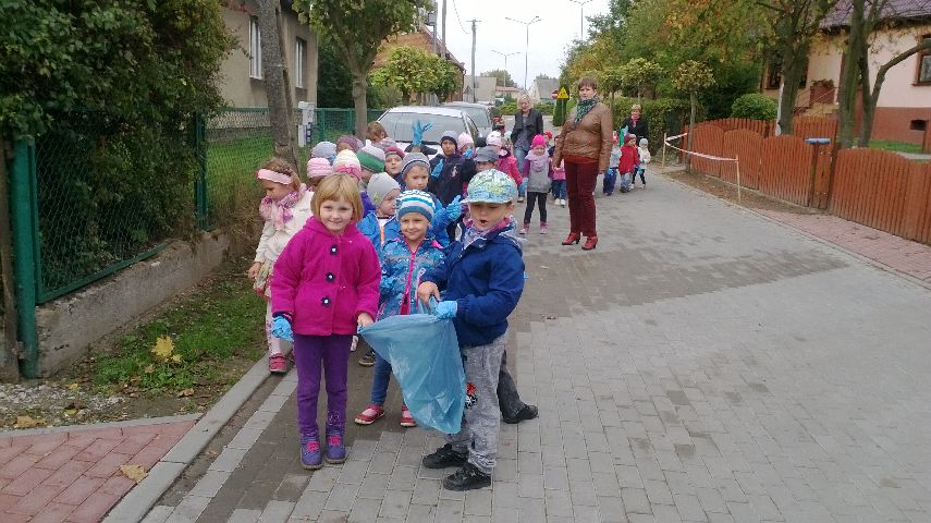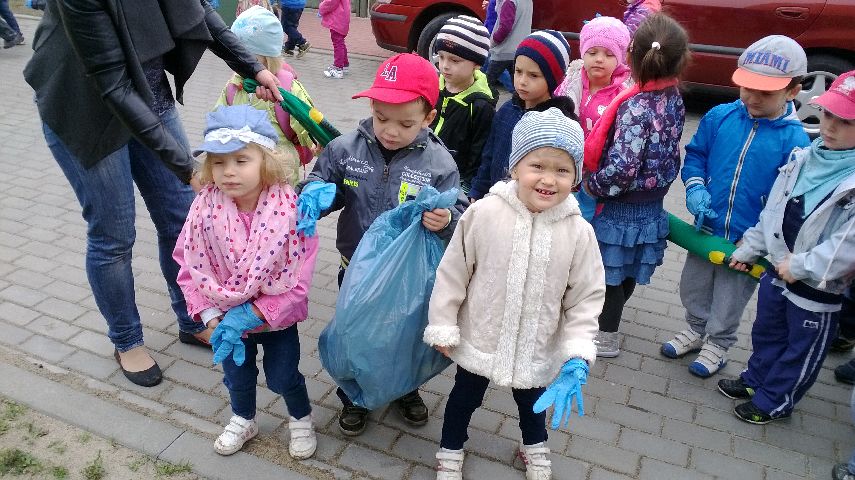 Już kolejny raz nasze przedszkole bierze udział w ogólnopolskiej akcji „Sprzątanie świata".  Przedszkolaki w atmosferze emocjonalnego zaangażowania uczestniczyły w akcji i oczyszczały z odpadów najbliższą okolicę .Dzieci były pełne entuzjazmu, prześcigały się w noszeniu worków. „Uzbrojone" w rękawice ochronne i plastikowe worki na odpady przemierzały znajome ulice.