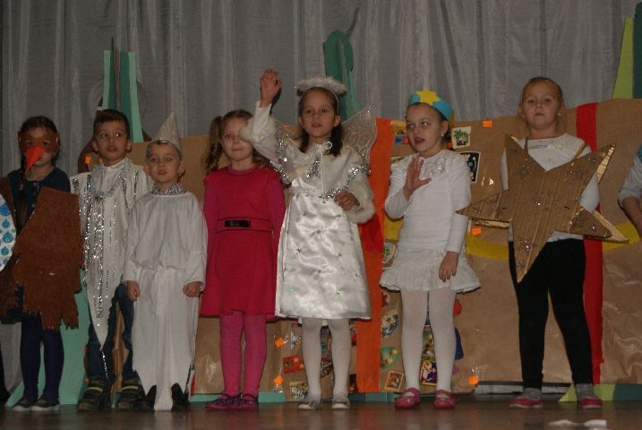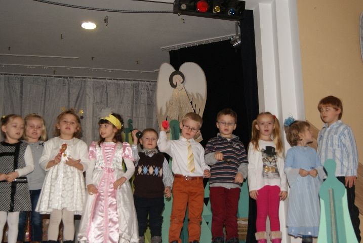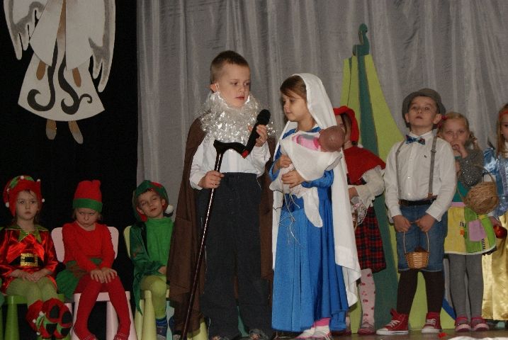 Każde dziecko prezentowało się ślicznie w stroju przygotowanym przez Rodziców. Spotkanie upływało w miłej atmosferze. Dzieci obdarowywały rodziców samodzielnie wykonanymi pracami, w tym roku były to : aniołki i choineczki z szyszką. Występy bardzo się spodobały, a dzieci otrzymały jak co roku gromkie brawa. Pięknie ustrojona choinka, wspólne śpiewanie kolęd oznajmiały wszystkim, że zbliża się czas odpoczynku i świętowania. Na zebranych gości czekał pięknie nakryty stół ze świątecznymi smakołykami.