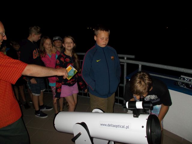 W miniony piątek 24.07.2015 r. przy pięknej pogodzie zorganizowaliśmy w astrobazie obserwacje nieba. Rozpoczęliśmy od Księżyca, który zawsze robi największe wrażenie na obserwujących. Podobnie było i tym razem. Następnie zaczęliśmy obesrować Saturna. Każdy uczestnik mógł sam zobaczyć jak pięknie wygląda ta planeta przy niemal 240-krotnym powiększeniu. Kiedy niebo zrobiło się już dostatecznie ciemne obserwowaliśmy także gwiazdy Województwa Kujawsko - Pomorskiego - Alkor i Mizar. Gościem specjalnym piątkowych obserwacji była grupa dzieci i młodzieży z Krakowa wraz z opiekunami.