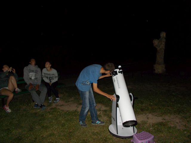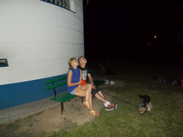 W środowy wieczór (12.08.2015) w Astrobazie w Gostycynie obserwowaliśmy "spadające gwiazdy" - Perseidy. Obserwacje rozpoczęły się zgodnie z planem - o godzinie 21:00, niestety uczestnicy zamiast Saturna, który miał być obserwowany zanim na niebie pojawią się Perseidy, zobaczyli niebo przykryte chmurami. Na szczęście w miarę upływu czasu pojawiało się coraz więcej przejaśnień, więc mogliśmy skierować teleskop na gwiazdy. Każdy z uczestników mógł przekonać się m.in o tym, że przez teleskop można zobaczyć dużo więcej gwiazd niż widać gołym okiem. Przed godziną 22:00 zrobiło się już na tyle ciemno, że zaczęliśmy dostrzegać na niebie "spadające gwiazdy". Taki stan utrzymał się o godziny 23:00, kiedy to na niebo zaczęły napływać kolejne chmury. Obserwacje perseidów nadal były możliwe, ale tylko na niezachmurzonych fragmentach nieba. Warunki pogodowe z chwili na chwilę się pogarszały, więc ok godziny 23:30 zdecydowaliśmy się zakończyć spotkanie.