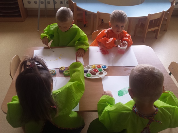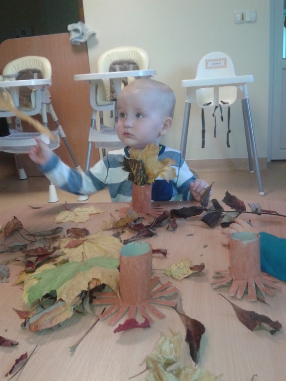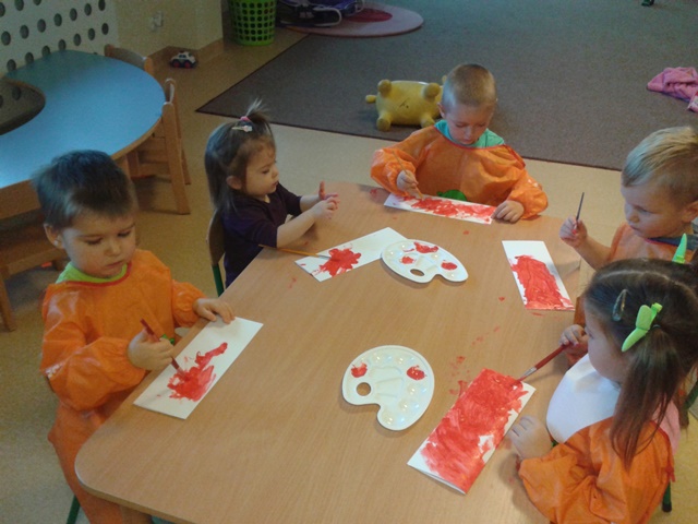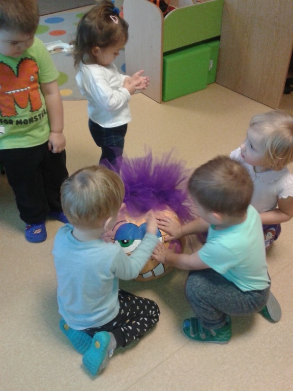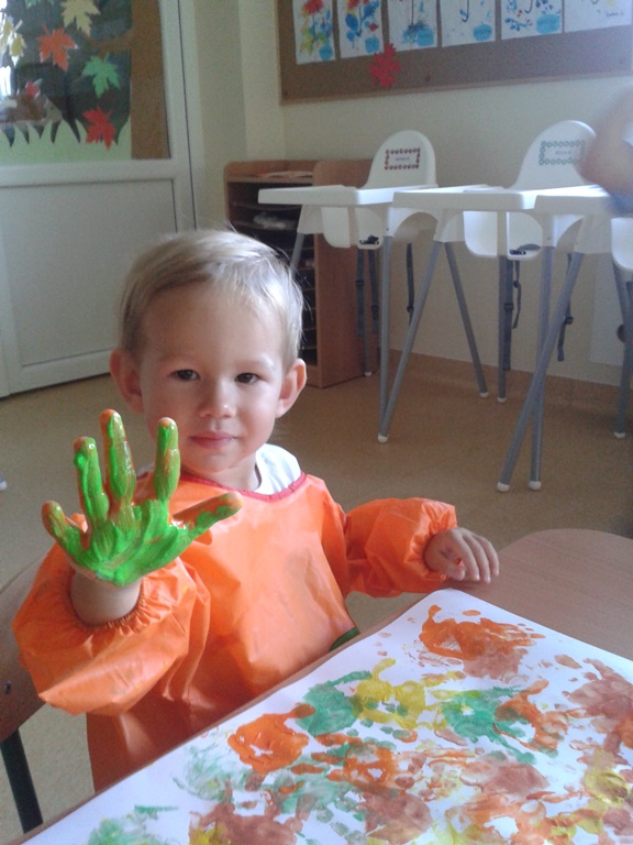 Aktualnie realizujemy tematy związane z porą roku – jesienią. Poznajemy piosenki tematyczne, wierszyki, a także wykonujemy prace plastyczne w wielu różnych technikach. Bardzo wiele przygotowań poświęciliśmy na przygotowanie się do Święta Niepodległości, poruszaliśmy tematy związane z Ojczyzną i Małą Ojczyzną. Mamy bardzo dużo planów na kolejne miesiące, które planujemy sukcesywnie realizować. Dodatkowo bardzo miłą niespodziankę w październiku sprawiły nam Seniorki z Domu Dziennego Pobytu „Wigor” i obdarowały dzieci cudowną, wykonaną przez Nie dynią – dzieci były zachwycone a dynia zdobi naszą salę.