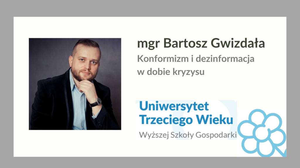 Psycholog Bartosz Gwizdała opowie o naszych zachowaniach i reakcjach w dobie pandemii. Dlaczego podążamy za tłumem i kupujemy zapasy papieru toaletowego? Kiedy zachowujemy się jak inni? A kiedy się buntujemy? Jak ustrzec się fake newsów czyli fałszywych informacji?